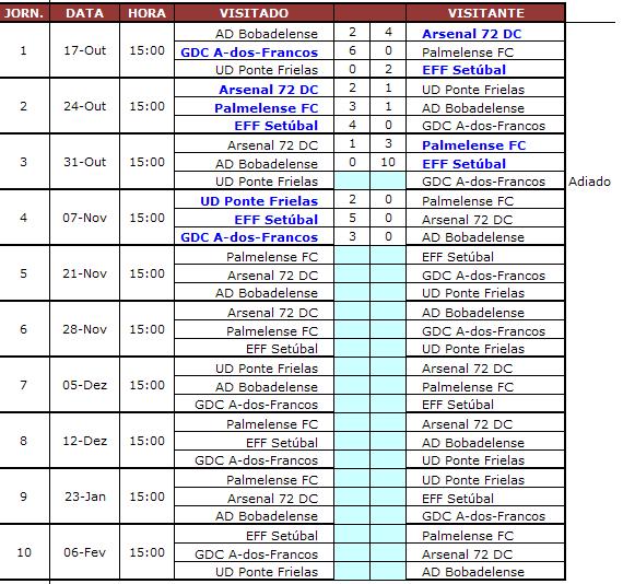 Calendário de jogos da 2º Divisão da serie E